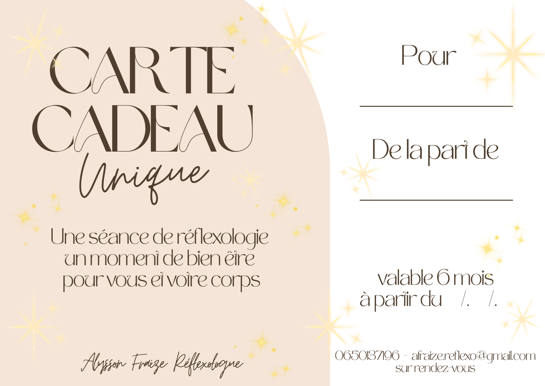 Contactez moi pour personnaliser vos cartes cadeaux avec la prestation de votre choix.